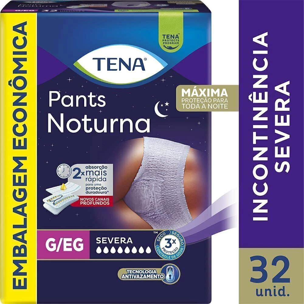 "TENA Pants Noturna é uma roupa íntima descartável e unissex de rápida absorção, proporcionando ao usuário máxima proteção durante toda a noite. É indicado para pessoas com mobilidade e com perdas de urina severa. Além disso, é muito confortável, segura e de fácil uso, como uma roupa interior (calcinha ou cueca). A excepcional segurança deve-se à sua tecnologia antivazamento, que tem um núcleo de alta absorção, que absorve rapidamente grandes quantidades de urina mantendo -a longe da pele, assim o usuário permanece seco, reduzindo significativamente o risco de irritações ou infecções cutâneas. o Barreiras protetoras - segurança máxima contra vazamentos; o Núcleo de alta absorção - posicionado para dar segurança na posição deitada; o controlador de odor - Sistema que neutraliza o risco de odores indesejáveis; o Material macio suave ao contato com a pele, para um maior conforto; o Elásticos suaves em volta da cintura permitindo uma adaptação perfeita ao corpo; o Elásticos duplos nas pernas para um melhor conforto e segurança contra vazamentos; o Costuras laterais removíveis para retirar o produto com maior facilidade."