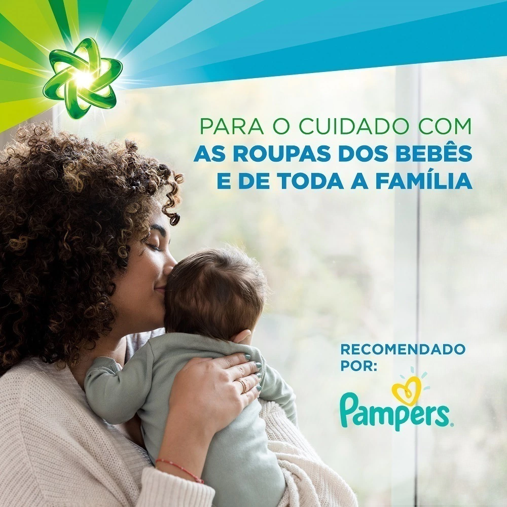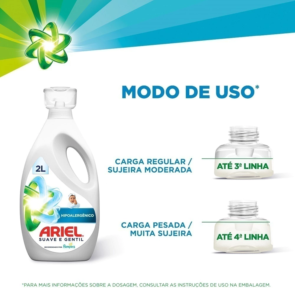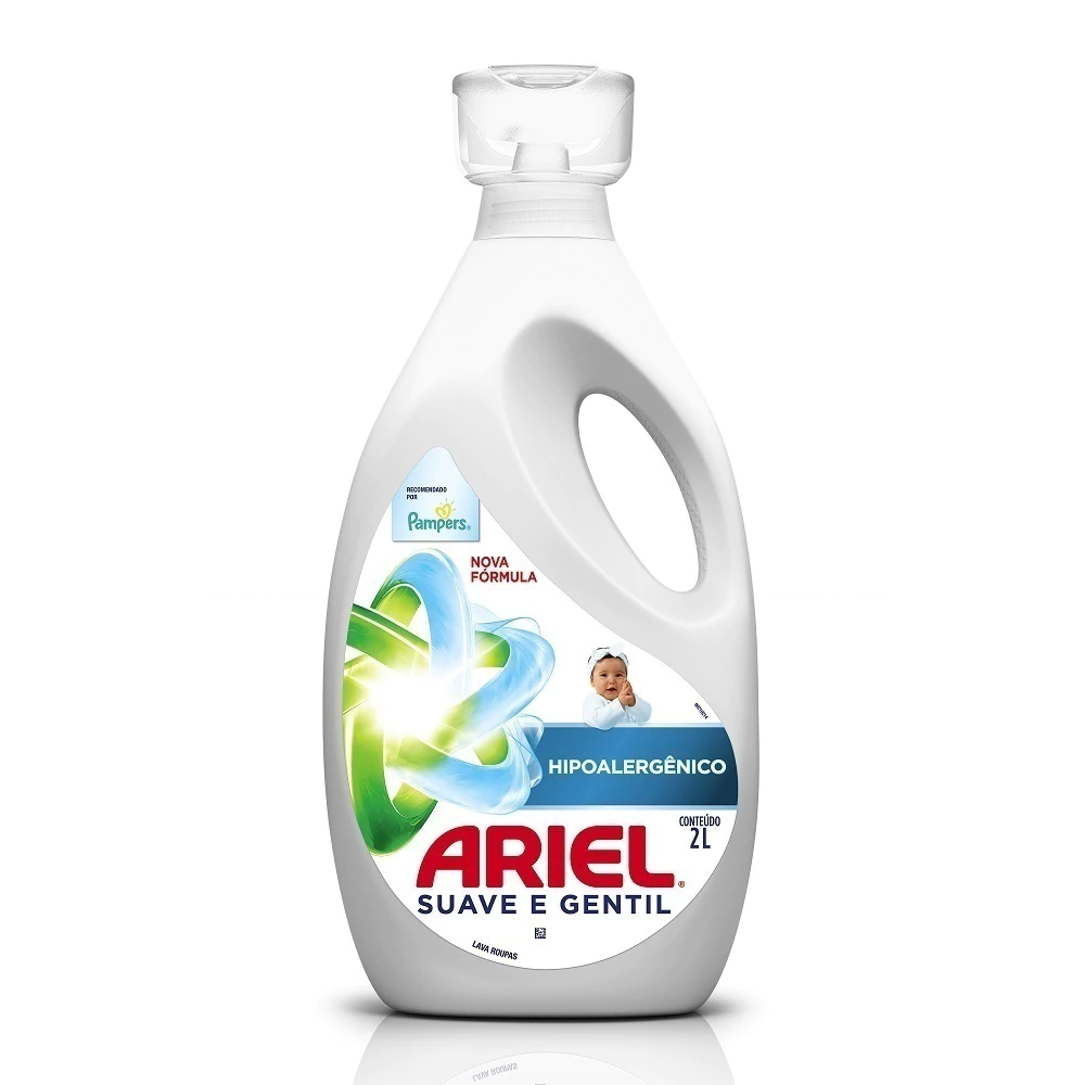 O sabão líquido Ariel Suave e Gentil é hipoalergênico, não possui corantes e é dermatologicamente testado;