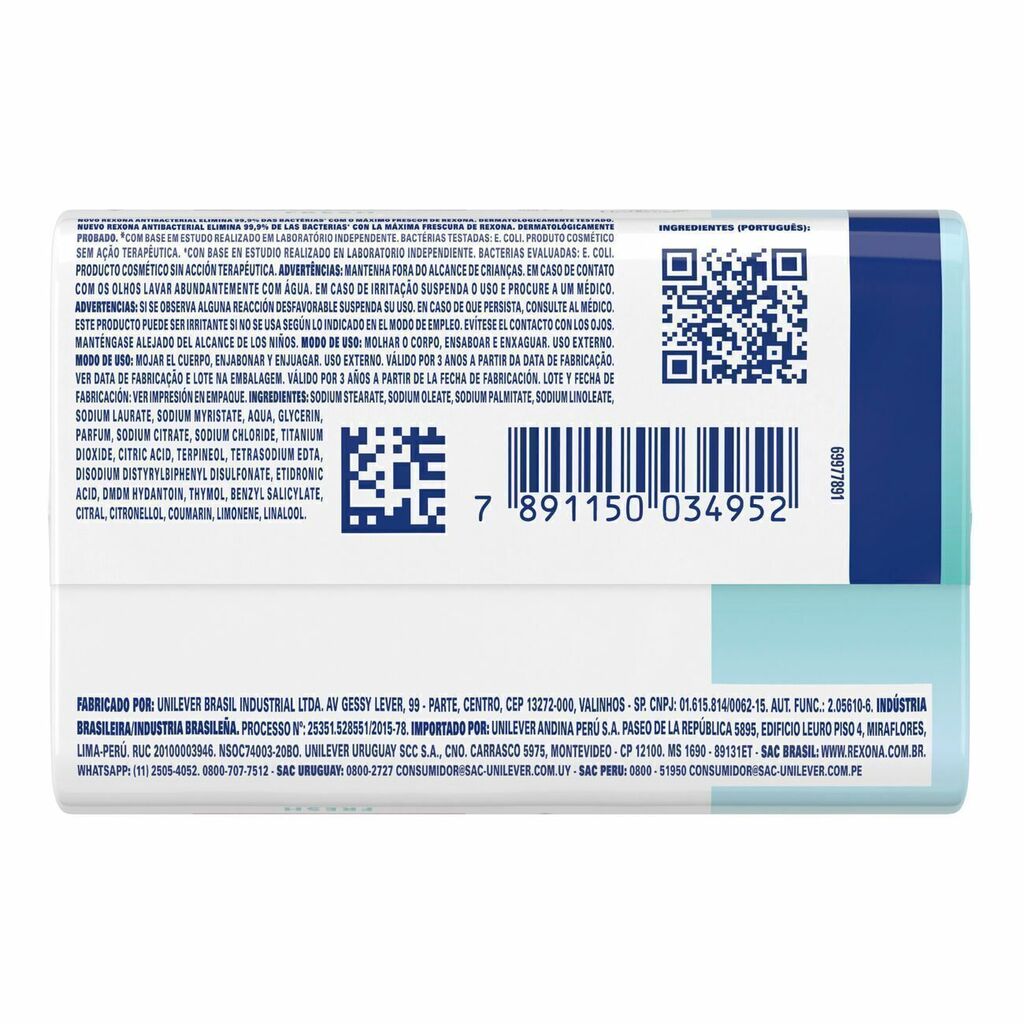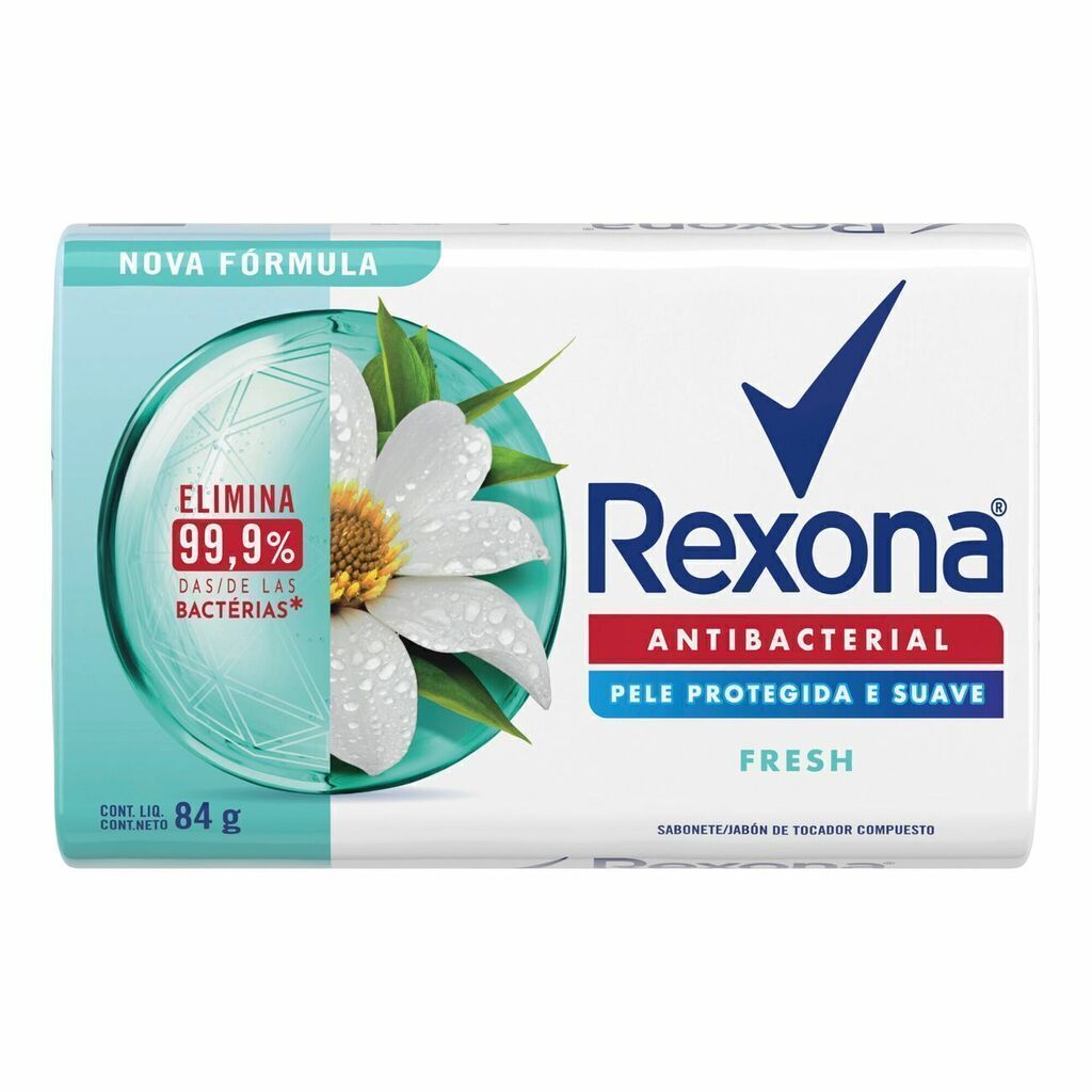 O sabonete em barra Rexona Antibacteriano Fresh limpa sem ressecar a pele. Dermatologicamente testado, apresenta um pH adequado, promovendo uma limpeza eficaz sem ressecar ou remover a camada protetora da sua pele. Limpeza profunda, hidratação na medida certa com notas frutais cítricas. Todas as variantes de Rexona são exclusivamente formuladas para proporcionar uma sensação única de refrescância durante e após o banho, para você sentir suas energias recarregadas. Além disso, apresentam um toque suave no banho, pois contém glicerina na fórmula, um ingrediente conhecido pelo seu poder de hidratação para a pele. Os sabonetes em barra Rexona têm variantes que proporcionam sinergia com os antitranspirantes. Maximize a sensação de refrescância utilizando Rexona Antitranspirante Active Dry e sinta-se protegido durante o dia todo. Dentro ou fora de casa, Rexona sempre está presente para garantir que sua pele esteja livre de bactérias. *Com base em estudo realizado em laboratório independente. Bactérias testadas: Staphylococcus Aureus. Produto cosmético sem ação terapêutica.