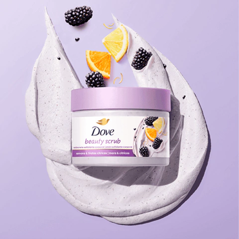 Para obter uma pele macia e radiante, a esfoliação adequada é uma etapa que não deve ser negligenciada em sua rotina. Por isso, Dove criou a nova linha de esfoliantes corporais Dove Beauty Scrub, para exaltar a beleza que há em sua pele. O Sabonete Esfoliante Corporal Dove Amora e Frutas Cítricas, feito com ¼ de creme hidratante, remove as células mortas e impurezas, e restaura os nutrientes da pele enquanto esfolia moderadamente, deixando-a macia e sedosa. Com uma textura suave e fácil de espalhar, esse sabonete esfoliante Dove esfolia, hidrata e limpa em um só passo, ao mesmo tempo em que oferece a doce fragrância de amora e frutas cítricas. Obtenha uma pele saudável e renovada, com a hidratação e o cuidado que ela necessita durante o banho. Dove Amora e Frutas Cítricas ajuda a dar um tom mais uniforme, deixando a pele suave, macia e radiante. Formulado com partículas esfoliantes de origem natural, pH neutro e 0% sulfato*, esse produto não danifica a barreira de proteção natural da sua pele.