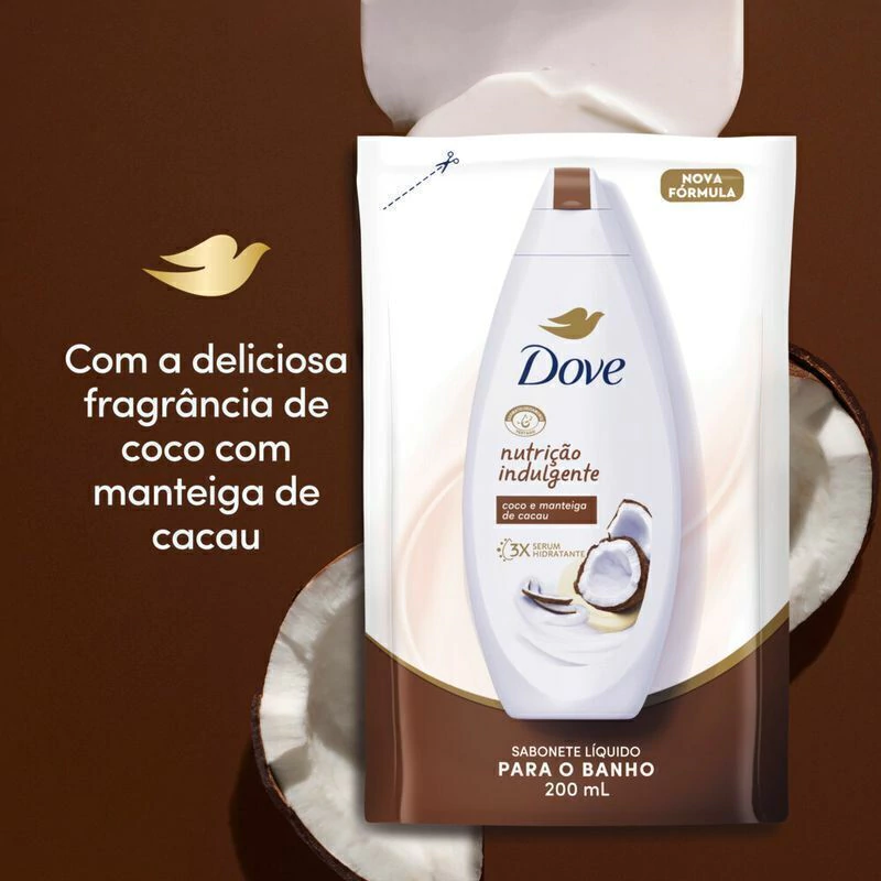 Você costuma se perguntar sobre como deixar sua pele sempre macia? Com o sabonete líquido correto você pode cuidar da sua pele, hidratando-a todos os dias e protegendo-a contra o ressecamento. O Sabonete Líquido Dove Nutrição Indulgente Leite de Coco é suave e hidratante, ajudando a sua pele a manter sua hidratação natural enquanto você toma banho. Ele limpa e nutre a pele, além de te fazer relaxar com uma deliciosa fragrância de leite de coco e pétalas de jasmim. O Sabonete Líquido Dove Nutrição Indulgente Leite de Coco é feito com tecnologia Nutrium Moisture, nossa mistura única de hidratantes que ajuda a nutrir a sua pele deixando-a macia e suave. Para uma melhor experiência de uso e rendimento do produto, sugerimos as seguintes formas de uso: - Apenas um pouco do produto na esponja é capaz de lavar o corpo inteiro; - Banho com esponja: Colocar uma pequena quantidade de produto na esponja (5ml) e passar suavemente pelo corpo; - Banho sem esponja: Aplicar uma pequena quantidade de produto nas mãos, fora da água, fazer a espuma e aplicar no corpo. Você pode ser fã do Sabonete Líquido Dove Delicious Care Leite de Coco, mas com tantas opções, por que não experimentar todos? Afinal, temos um sabonete para cada momento.