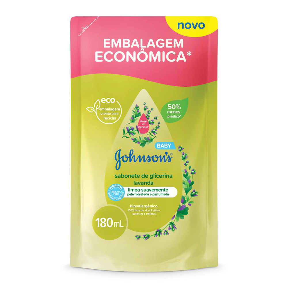 O que é e para que serve?Você sabia que a pele do bebê é mais fina e perde água duas vezes mais rápido que a pele do adulto? Por isso, é importante manter uma rotina de limpeza e higiene adequada para os bebês já nos primeiros dias de vida. O Sabonete Líquido de Glicerina Lavanda JOHNSON'S® Baby, 180mL é o cuidado que a pele do bebê precisa e a limpeza que você espera com uma fragrância refrescante. Além disso, é testado por pediatras e dermatologistas, hipoalergênico e seguro desde o primeiro dia de vida. . Embalagem com 50% menos plástico* pronta para reciclar, cuidando do seu bebê e do futuro do nosso planeta!*em relação ao frasco de 200mLBenefícios e diferenciais100% livre de álcool etílico, corantes e sulfatosPele hidratada e perfumadaLimpa suavementeDesenvolvido para uso desde o 1º dia.Da cabeça aos pésTestado por pediatras e dermatologistas94% de ingredientes naturais.*Com glicerina de origem naturalHipoalergênico, formulado para ser suaveExclusiva fórmula CHEGA DE LÁGRIMAS®Livre de ingredientes que são agressivos à pele do bebê (corantes, parabenos e sulfatos)pH ideal para a delicada pele do bebê*Cálculo conforme ISO 16128-1:2016 com base no volume cumulativo, incluindo água.Como usarColoque uma pequena quantidade do produto na mão e massageie suavemente o cabelo e a pele do bebê até obter uma espuma cremosa. Enxágue em seguida.Indicações de uso: Seguro para todas as idadesComposiçãoAqua/água, Cocamidopropyl Betaine/cocamidopropil betaína, Decyl Glucoside/decil glicosídeo, Sodium Cocoyl Isethionate/cocoil isetionato de sódio, PEG-80 Sorbitan Laurate/polissorbato 20, Glycerin/glicerol, Sodium Benzoate/benzoato de sódio, Citric Acid/ácido cítrico, Sodium Methyl Cocoyl Taurate/metil cocoil taurato de sódio, PEG-150 Distearate/diestearato de PEG-150, Parfum/perfume, Disodium EDTA/edetato dissódico, Polyquaternium-10/poliquatérnio-10.PrecauçõesMantenha fora do alcance das crianças. Deve ser aplicado por adulto ou sob sua supervisão. Evitar contato com os olhos. Não usar na pele irritada ou lesionada. Em caso de irritação, suspender o uso e procurar um médico. Conservar em local fresco e ao abrigo da luz solar direta. Este produto foi formulado de maneira a minimizar possível surgimento de alergia.