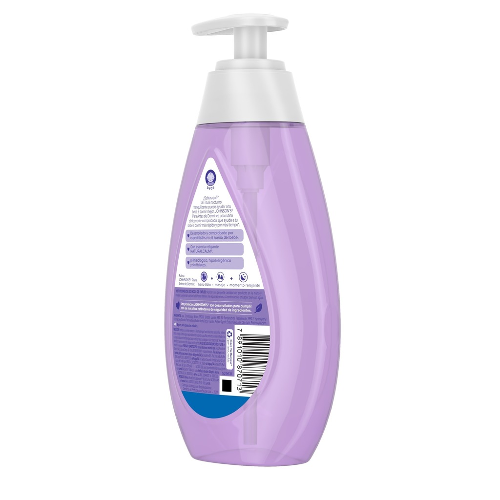 Desenvolvido e testado com especialistas em sono do bebê, o Sabonete Líquido JOHNSON'S Hora do Sono usado dentro da rotina, ajuda seu bebê a dormir mais rápido e por mais tempo*. Com essência relaxante NATURACALM. Tem pH fisiológico, é hipoalergênico e livre de corantes, parabenos, sulfatos e ftalatos. Durante um banho morno, aplique primeiro uma pequena quantidade de sabonete nas mãos. Espalhe na pele do bebê, massageando-a em movimentos circulares. Enxágue na sequência. Este sabonete foi desenvolvido para minimizar o possível surgimento de alergia e deve ser aplicado por um adulto ou sob sua supervisão. Não utilizar em pele ou couro cabeludo que apresente irritações ou lesões. Os resultados são obtidos com base na rotina de banho e pós-banho do bebê.