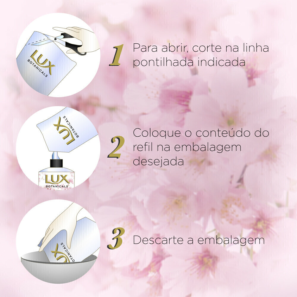 Sinta a espuma cremosa e a explosão de fragrâncias de Lux Botanicals Flor de cerejeira para mãos suaves e delicadamente perfumadas. Lux Botanicals possui uma exclusiva combinação de delicadas fragrâncias e Óleos Hidraflorais extraídos da natureza. Lux possui Óleos Hidraflorais, uma mistura exclusiva de extratos de flores e óleos essenciais.