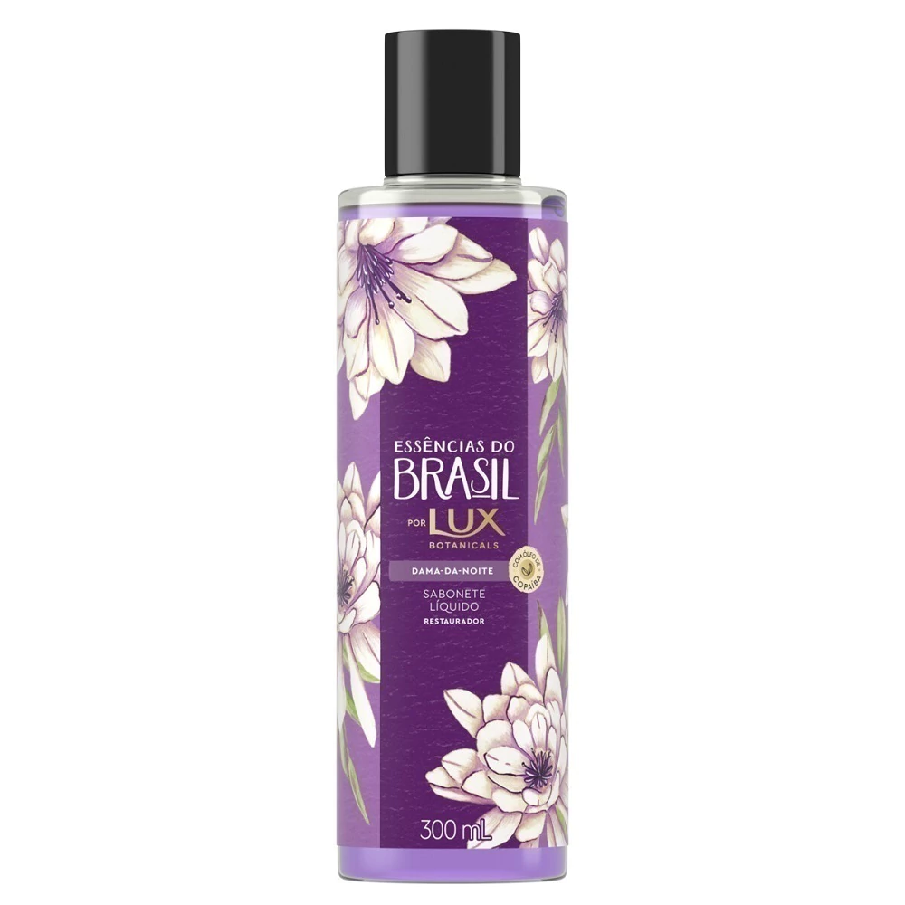 Conheça o sabonete líquido para o corpo Essências do Brasil por Lux Botanicals Dama da Noite 300ml. Cada fragrância foi especialmente criada para revitalizar o seu corpo, mente e alma. A coleção, inspirada na exuberância da natureza do Brasil, foi baseada nos nossos rituais e tradições para transformar o seu momento de autocuidado em uma rotina de beleza diária. A fragrância da Dama da Noite tem uma nota energizante de bergamota cítrica que combinada com um carinhoso aspecto floral branco revela a sensação de uma fragrância restauradora. As fórmulas possuem óleo de copaíba com propriedades altamente hidratantes, além de conter vitamina E que ajuda a melhorar a maciez e elasticidade da sua pele. Experimente também os outros formatos de Dama da Noite: o sabonete em barra, sabonete líquido para as mãos em garrafa ou refil com poder restaurador. Além disso, a marca possui outras opções de fragrâncias na linha: flor do Cajueiro, Bromélia e Vitória régia. A nova coleção "Essências do Brasil por Lux Botanicals" oferece formatos inéditos que trazem sensações e texturas únicas, assim como o produto tem uma nova garrafa transparente, sofisticada e sustentável. Transforme a sua experiência de banho em um momento único e prazeroso com os benefícios dos sabonetes Essências do Brasil por Lux Botanicals.