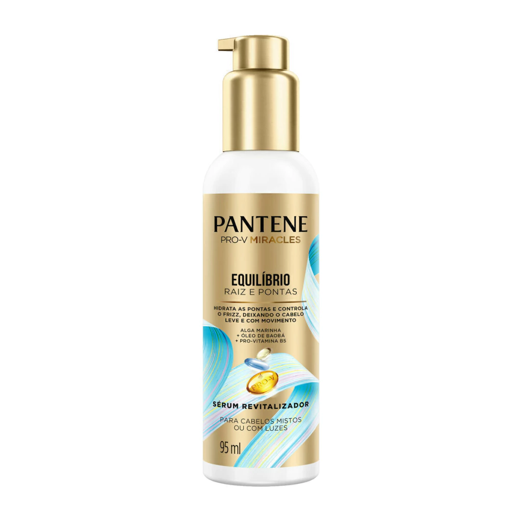 Raiz oleosa e pontas secas e como ter dois cabelos em um! Se resolver a oleosidade na raiz, as pontas ressecam, e horrível! Com certeza você já tentou de tudo para deixar as pontas hidratadas mas os produtos aumentam a oleosidade. Não mais! Sérum Revitalizador para cabelo. Si voce quer ter as pontas hidratadas e sem frizz por até 72 horas, Então o Sérum Pantene da coleção Equilibrio Raiz e Pontas com óleo de baobá, alga marinha e Pro-Vitamina B5 é ideal para você. Tipo de cabelo. Este sérum para cabelo e ideal para as pessoas que precisam de hidratação porque tem as pontas secas o com luzes e não gostam de leave-in porque acham que aumentam a oleosidade na raiz e deixam o cabelo pesado. Características. Sua fórmula exclsuiva sem sal', derrete nas mãos e penetra profundamente nos fios promovendo hidratação, suavidade e controle de frizz para as pontas secas, ao mesmo tempo em que mantém o movimento e leveza dos cabelos. Além disso, sua fórmula com ingredientes altamente hidratantes e purificantes é segura para cabelos com luzes, deixando-os soltinhos, frescos e brilhosos. Serum cabelo? Pantene Equilibrio! 'Sem NaCl adicionadoSHORT DESCRIPTIONPontas hidratadas e sem frizz por até 72 horas? Então o Sérum Revitalizador Pantene da coleção Equilibrio Raiz e Pontas com óleo de baobá e alga marinha é ideal para você. Seu complexo Pro-V Miracles penetra profundamente nos fios hidratando profundamente as pontas ressecadas ou espigadas e controlando o frizz dos cabelos sem pesar. Além disso, sua fórmula sem sal' com ingredientes altamente hidratantes e purificantes é segura para cabelos com luzes, deixando-os mais soltinhos, frescos e brilhosos.