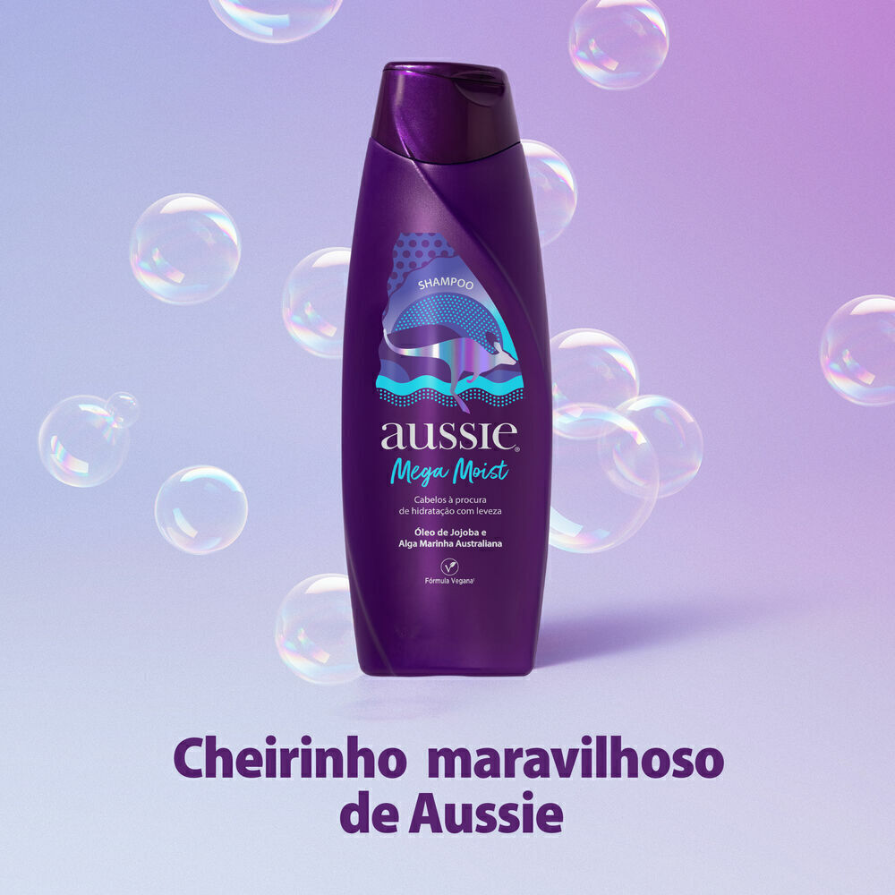 O Shampoo Aussie Mega Moist promove uma limpeza profunda na raíz e suave nos fios, repondo a água e os nutrientes que seu cabelo precisa pra ficar hidratado e soltinho. Ele ainda deixa o cabelo com aquele cheirinho de Aussie que todo mundo ama.