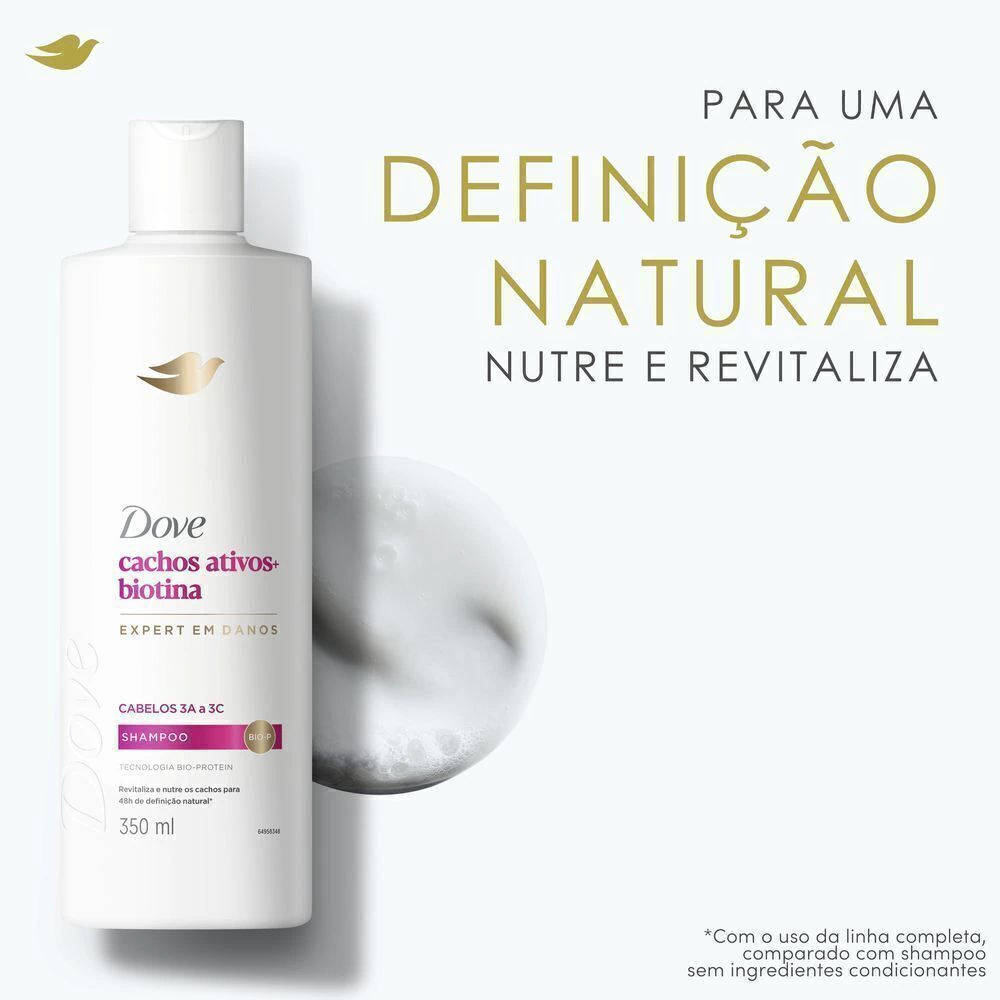 Dove Shampoo Cachos Ativos + Biotina foi desenvolvido para limpar delicadamente e realçar a beleza natural dos cachos. Enriquecido com 6% Biotina Complex, o shampoo para cachos oferece até 48h* de definição mantendo os fios leves e macios.