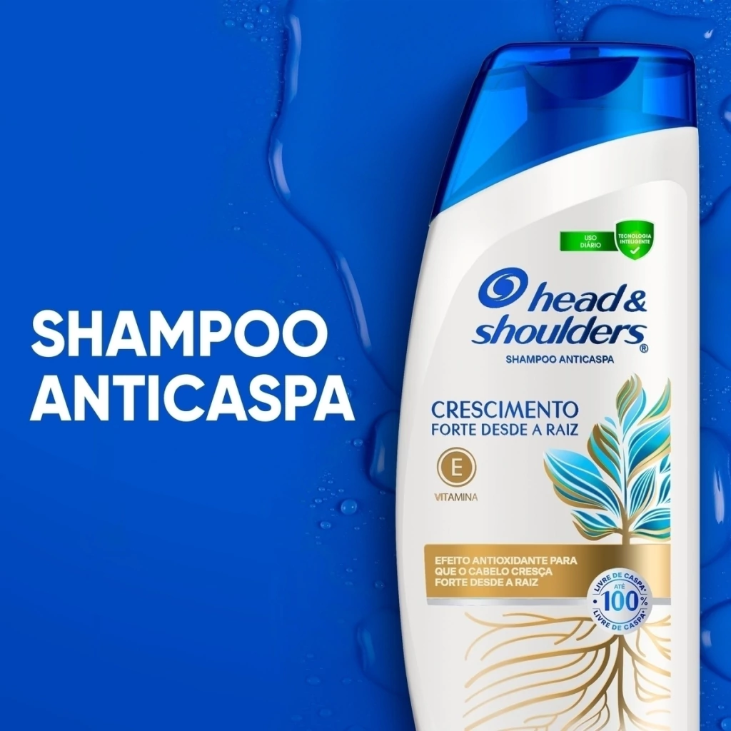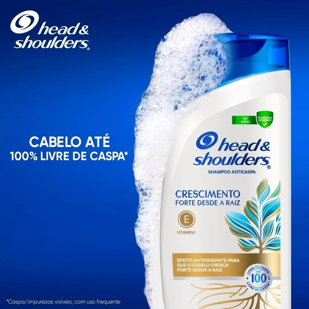 o Um cuidado exclusivo do seu cabelo e couro cabeludo o Uso diário recomendado. Fórmula com pH balanceado o Fórmula com tecnologia inteligente: efetiva contra a caspa* e suave com o seu cabelo. Efeito revitalizante desde a raiz.*Caspa visível, com uso regular o Experimente Head & Shoulders a marca de shampoo n° 1 do mundo*** o AÇÃO ANTIOXIDANTE E efeito revitalizante desde a raiz do cabelo o FÓRMULA COM TECNOLOGIA INTELIGENTEEfetiva contra a caspa* e suave com o seu cabelo.*Caspa visível, com uso regular o Vitamina E