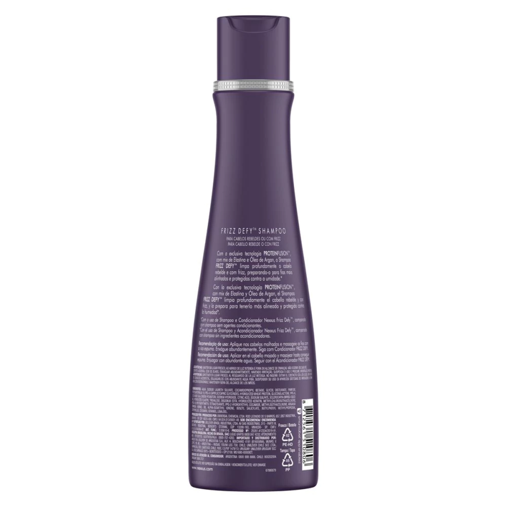 - O Shampoo Nexxus Frizz Defy mantém seu cabelo liso e controlado por até 24 horas - Nosso shampoo antifrizz tem em fórmula um exclusivo blend de Proteinfusion com elastina e óleo de argan - A fórmula sem silicone reequilibra os cabelos ao reconstruir as proteínas capilares - Nexxus Frizz Defy é o primeiro passo essencial para proteger os cabelos contra umidade e frizz - O Shampoo Nexxus Frizz Defy promove hidratação e nutre profundamente, deixando os cabelos prontos para o condicionador - Seu cabelo se manterá macio e sem frizz o dia todo com o Shampoo Nexxus Frizz Defy