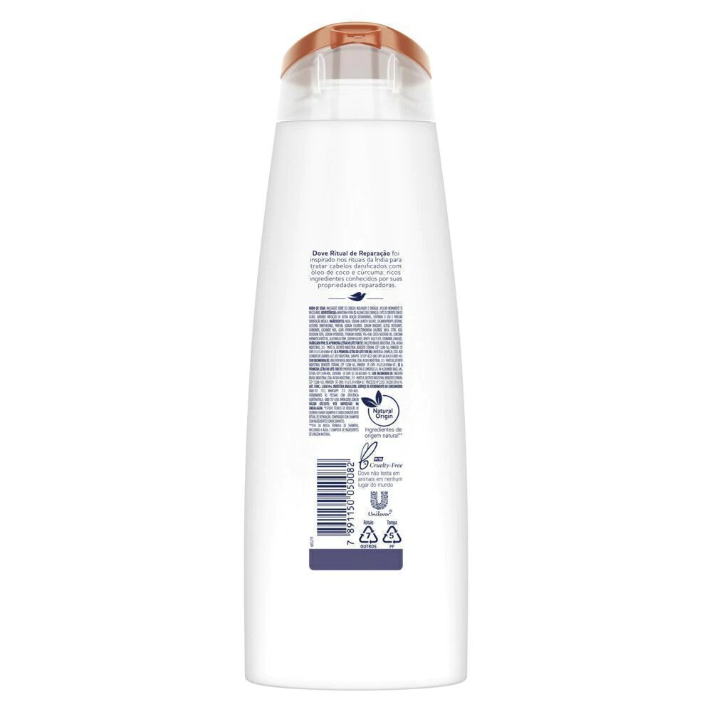 oShampoo Dove Ritual de Reparação foi inspirada nos rituais de beleza das mulheres indianas. oUm Shampoo nutritivo enriquecido com o óleo de coco e cúrcuma. oShampoo Dove com ingredientes conhecidos por suas propriedades reparadoras oNutre profundamente para restaurar o cabelo danificado, ideal para quem busca produtos para reconstrução capilar oShampoo para ccbelos fortes** e mais bonitos. oShampoo com fórmula com 91% de ingredientes de origem natural*.