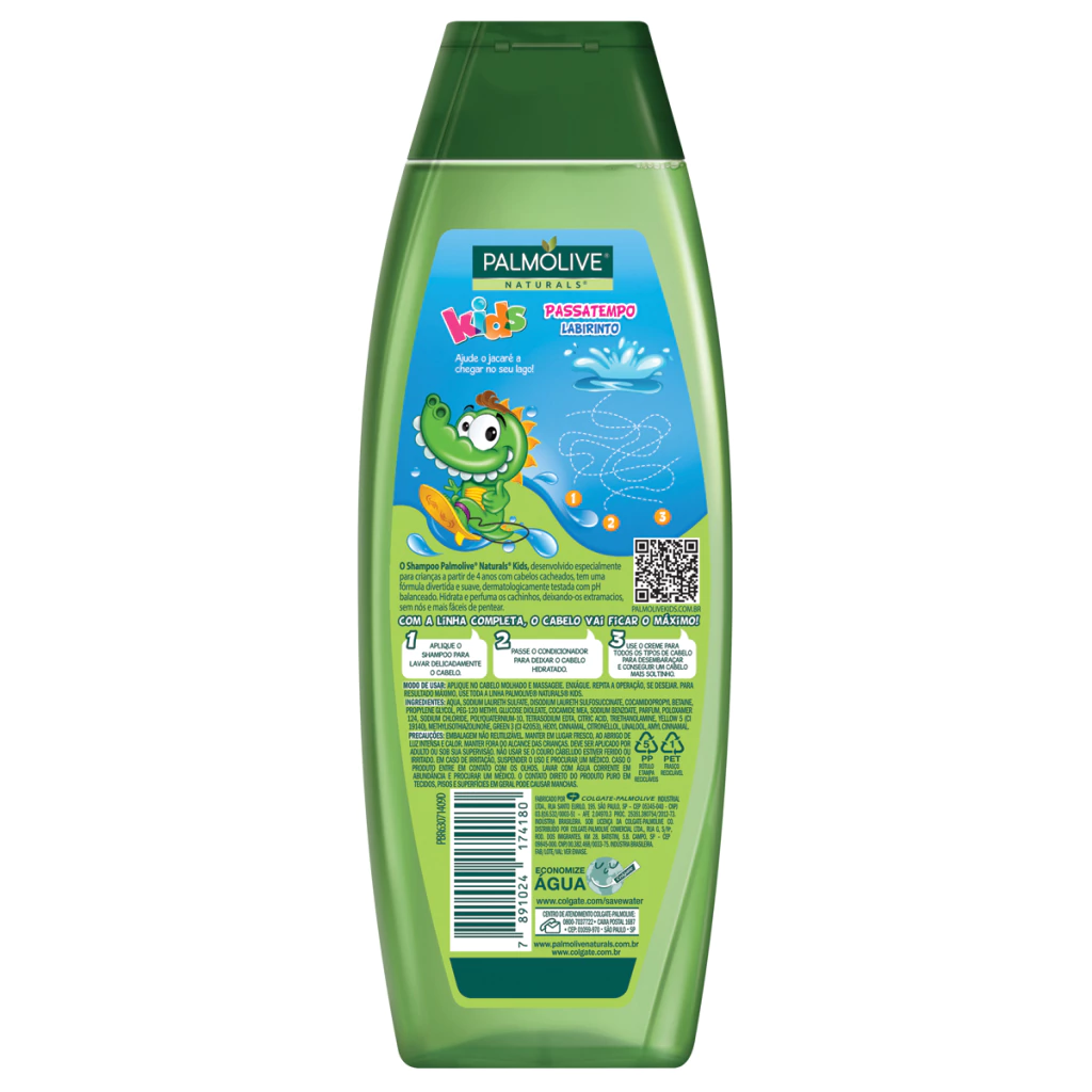 Cabelo cacheado é lindo, mas requer mais cuidado para ficar macio e definido. Para conseguir esse resultado foi desenvolvida a linha de shampoo e condicionador Palmolive® Naturals Kids para Cabelo Cacheado que proporciona um banho divertido e sem lágrimas para crianças a partir de 4 anos.Dermatologicamente testadoHidrata e perfuma os cachinhos, deixando-os extra macios, sem nósLimpa suavemente os cabelos deixando- os mais fáceis de pentearEmbalagem divertida com jogos e passatempos para a hora do banho