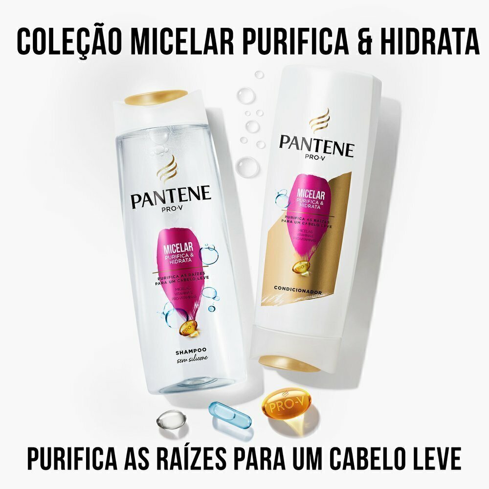 O shampoo da coleção Micelar Purifica & Hidrata não contém silicone e limpa suavemente com o uso de complexos ricos em água para remover as impurezas. Além disso, é rico em antioxidantes e sua fórmula leve evita que os cabelos fiquem pesados. A fórmula contém vitamina E, Pro-vitaminas e moléculas de limpeza para uma purificação delicada que ajuda a controlar os cabelos oleosos e a prevenir a aparência pesada. A coleção Micelar da Pantene inclui condicionador que deixa os cabelos claros e limpos.
