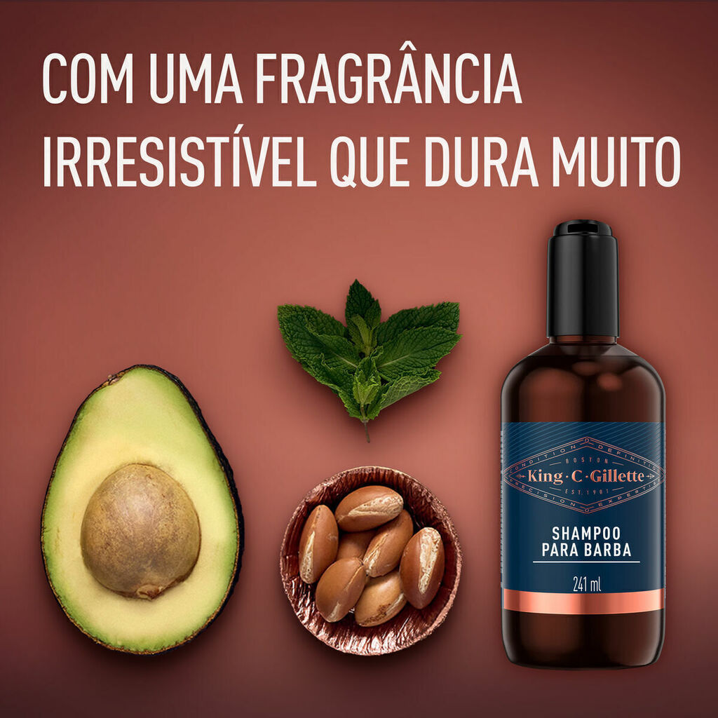 O que é e para que serve o Shampoo para Barba King C. Gillette? Ideal para todos os tipos de barba, King C. Gillette é um shampoo formulado com Óleo de Argan, Abacate, Água de Coco e Mentol, ingredientes especialmente selecionados que removem as impurezas e oleosidades, deixando uma sensação refrescante e de maciez na barba.
