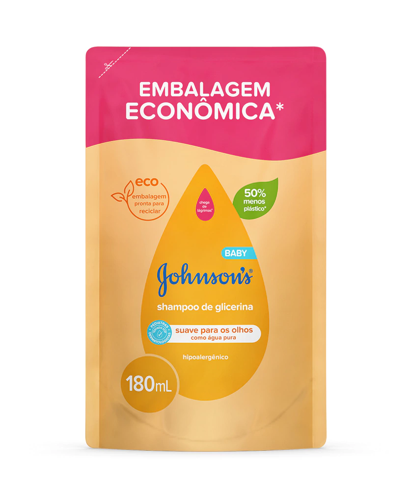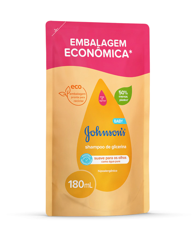 Você sabia que o cabelo dos bebês é 5x mais fino que o cabelo dos adultos? Com fórmula suave para dar o cuidado que o cabelo do seu bebê precisa, o Shampoo Para Bebê Refil JOHNSON'S® Baby De Glicerina, 180mL limpa suavemente e protege¹ os cabelos e o couro cabeludo do bebê sendo seguro para todas as idades. Testado por Pediatras e Dermatologistas. Embalagem com 50% menos plástico², cuidando do seu bebê e do futuro do nosso planeta!