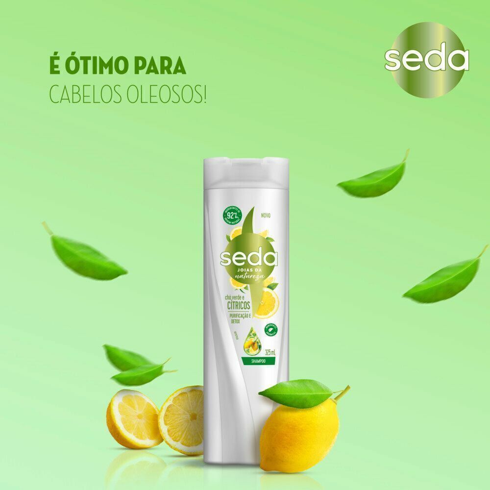 - Fórmula exclusiva, que purifica as fibras capilares, removendo as impurezas e deixando o cabelo brilhante e com uma sensação de frescor; - Sensação de frescor e cabelos brilhantes; - Shampoo perfumado com uma leve mistura de notas herbais, como chá verde e capim limão, com notas florais; - Os extratos cítricos nos cabelos dão sensação de refrescância; - O chá verde tem propriedade antioxidante e revigorante; - Ótimo para cabelos oleosos; Está procurando um shampoo com ingredientes naturais e refrescantes, mas não sabe o que usar? Fica tranquila, Seda te ajuda nessa busca! O Shampoo Seda Pureza Detox 325ml traz uma explosão de fragrância, porque possui notas herbais, como o chá verde e capim limão, além de notas florais. O Chá Verde é conhecido por ser uma fonte de antioxidantes, o que o faz ser conhecido pela habilidade de manter o seu cabelo brilhante e saudável. Mais do que isso, ele também contém Vitamina C e Vitamina E em sua composição. Já os extratos cítricos presentes no Shampoo Seda Pureza Detox 325ml dão aquela sensação de refrescância e limpeza ao seu cabelo.