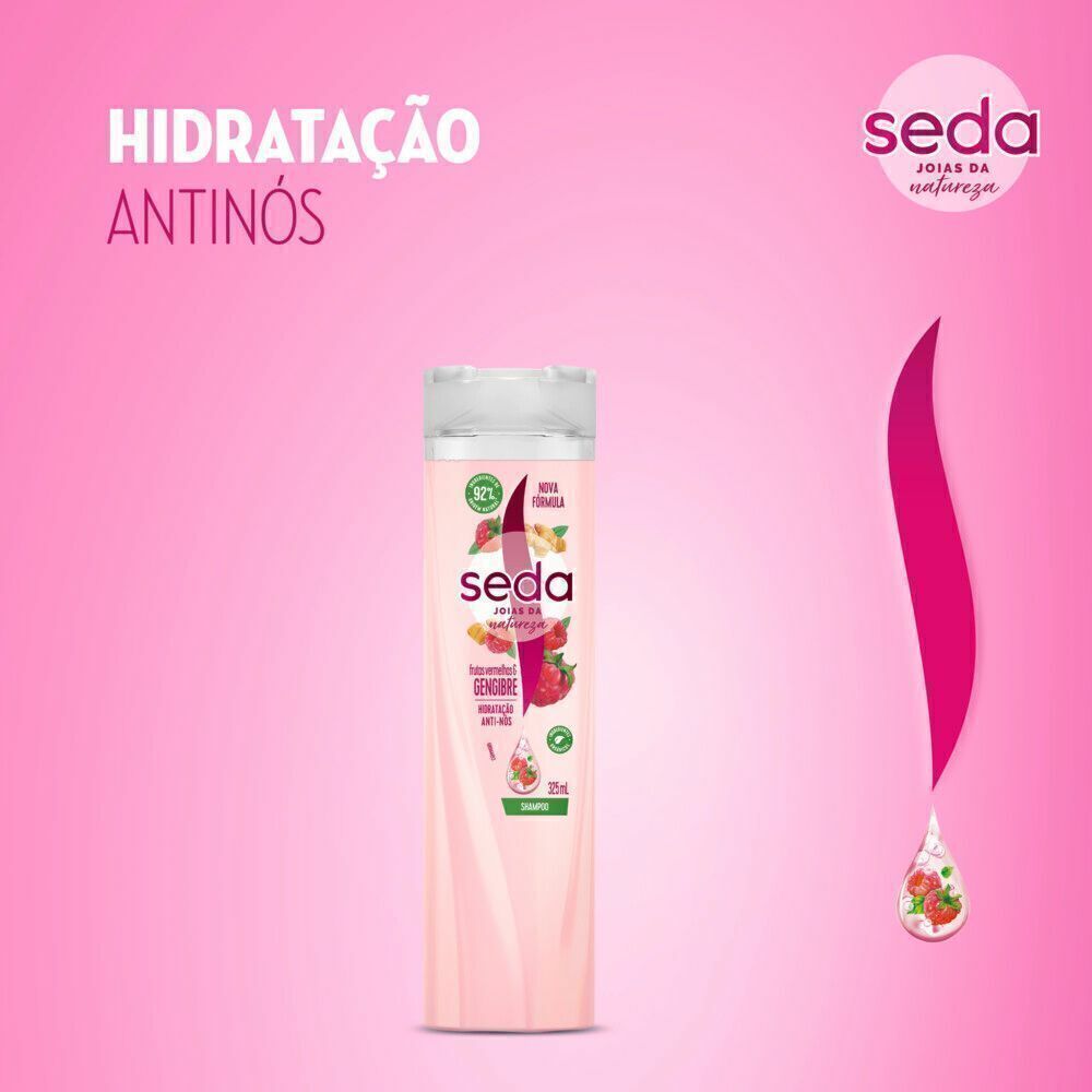 Seus fios sempre dão aqueles nós e você vive pensando em como desembaraçar o cabelo do jeito mais fácil? Calma! Não precisa se desesperar! Seda te ajuda a acabar com o seu problema na hora de pentear os cabelos! É só usar o Shampoo Seda Hidratação Antinós 325ml. Esse produto incrível foi criado porque sabemos que não tem nada melhor que um cabelo fácil de escovar. Por isso, sua fórmula exclusiva é feita com raiz de amoreira e fusão de óleos, que hidrata fibra por fibra dos cabelos e deixa os fios mais suaves* e macios.
