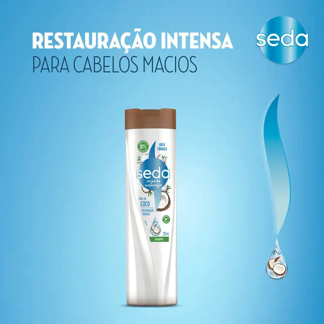 Não tem nada melhor do que estar com um cabelo super-hidratado, saudável, muito macio e brilhante, não é mesmo? Pensando nisso, nós criamos o Shampoo Seda Joias da Natureza Óleo de Coco, que hidrata a fibra capilar e restaura intensamente o seu cabelo. Nossa fórmula exclusiva contém um mínimo de 92% de ingredientes de origem natural*. O produto tem uma fórmula com óleo de coco orgânico, conhecido pelas propriedades de hidratação e fortalecimento dos fios. Com um alto nível de vitaminas e nutrientes, o shampoo hidrata e penetra profundamente, ajudando a recuperar a fibra capilar de dentro para fora, restaurando os cabelos de maneira intensa. Seu cabelo ficará macio e visivelmente mais saudável**. O Shampoo Seda Joias da Natureza Óleo de Coco é perfeito para cabelos que precisam de mais hidratação e nutrição, pois hidrata os fios, além de deixá-los super cheirosos. Dúvidas em como usar? É simples e fácil! Coloque o Shampoo Seda Joias da Natureza Óleo de Coco nas mãos e aplique-o diretamente nos cabelos molhados. Massageie bastante com os dedos e enxágue bem. Quer resultados ainda mais incríveis? Então use também o Condicionador Seda Joias da Natureza Óleo de Coco e finalize com um Creme para Pentear Seda de sua preferência. Seu cabelo hidratado, com os fios macios e sedosos, do jeitinho que você gosta! Seda se preocupa com o meio ambiente e não testa em animais em nenhum lugar do mundo. A garrafa deste produto é 100% reciclável.