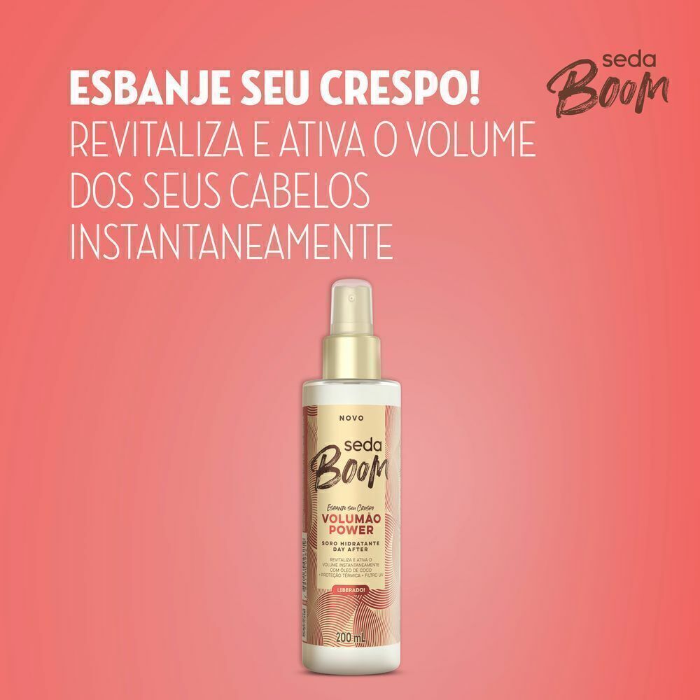 oEste produto para cabelos Seda Boom possui uma textura leve e fluida, possibilitando reativar seu brilho e volume no Day After