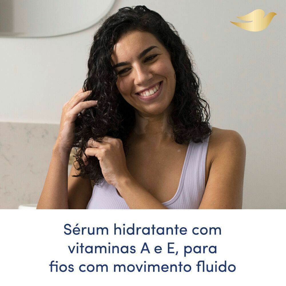 o Sérum Leave In Hidratação Dove com nanomoléculas de água e vitaminas A e E que deixa os cabelos leves e macios