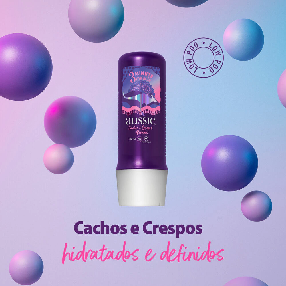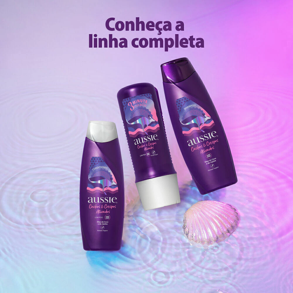 1. Lave bem o seu cabelo com o Shampoo Aussie Cachos e Crespos Ativados. Repita até que sinta seu cabelo totalmente limpo. 2. Tire o excesso de água do cabelo. Se precisar, use uma toalha macia e seca. 3. Aplique o 3 Minutos Milagrosos Aussie Cachos e Crespos Ativados, deixe agir por 3 minutos e enxágue. 4. Aplique o Condicionador Aussie Cachos e Crespos Ativados para selar as cutículas e enxágue. 5. Seque bem o cabelo com secador e curta os cachos super definidos.